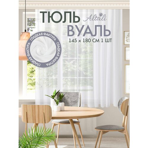 Тюль короткий / для интерьера кухни, гостиной, спальни / 145х180 см, на ленте / дом, дача / Белоснежная / Altali
