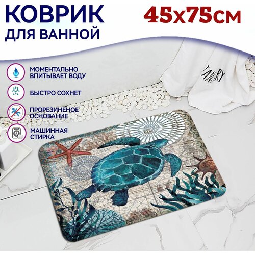 Коврик для ванной "Морская черепаха" 45х75 см, противоскользящий, синий