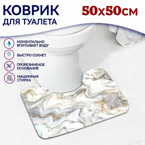Коврик для туалета "Мрамор бежевый" 50х50 см, с вырезом под унитаз противоскользящий, камень
