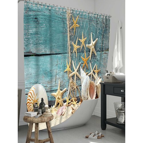 Штора (занавеска) для ванной / душа водоотталкивающая тканевая с кольцами 180 x 180 см Пляж