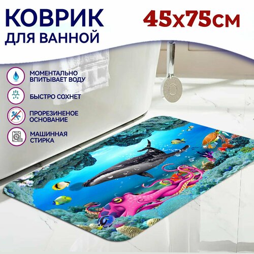 Коврик для ванной "Дно морское" 45х75 см, противоскользящий, разноцветный