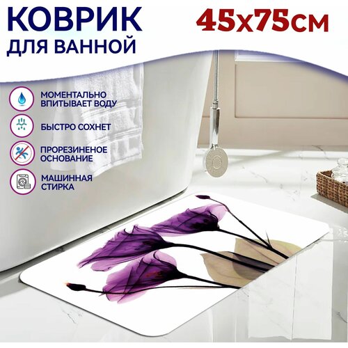 Коврик для ванной "Цветы" 45х75 см, противоскользящий, фиолетовый