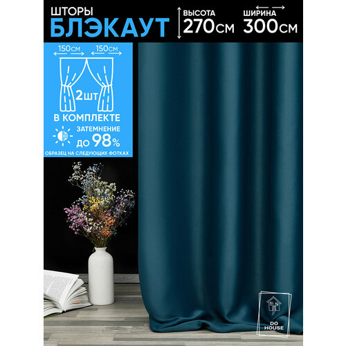 Комплект штор блэкаут однотонные плотные для спальни интерьерные темно-синие 150х270 см (2 шт.)