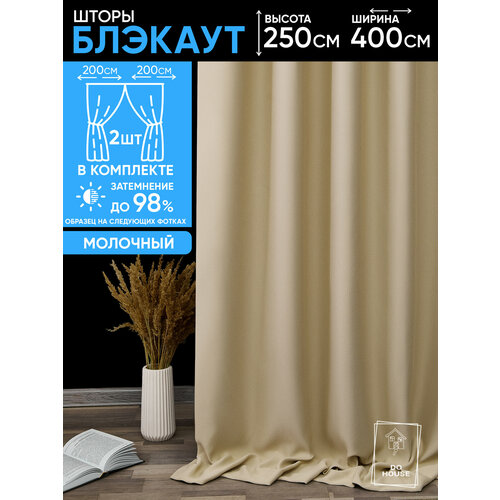 Шторы блэкаут однотонные плотные для спальни интерьерные молочные 200х250 см (2 шт.)