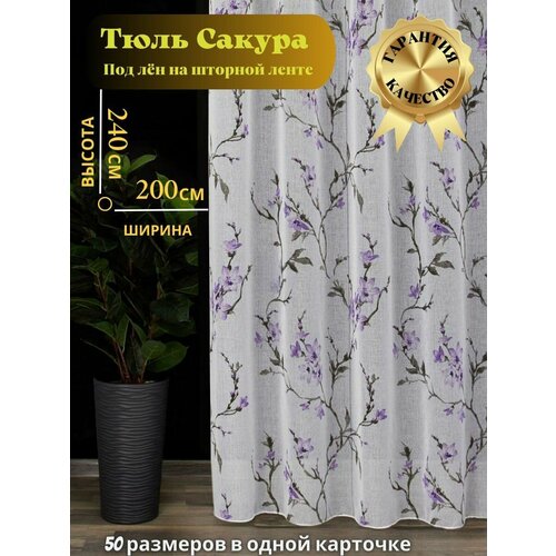 Тюль Сакура лен/ Высота 230см Ширина 200см (2.3 на 2.0 м ) Тюль для кухни / Тюль в гостиную / Тюль в детскую / шторы