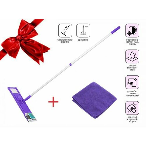 Швабра для пола с насадкой из микрофибры, лиловая + салфетка из микрофибры 30х30 см, PERFECTO LINEA (промо салфетка из микрофибры в подарок) (43-39203