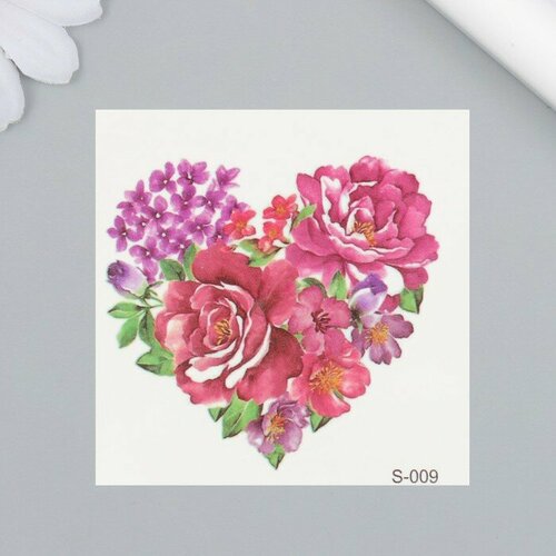 Татуировка на тело цветная "Сердце из цветов" 6х6 см