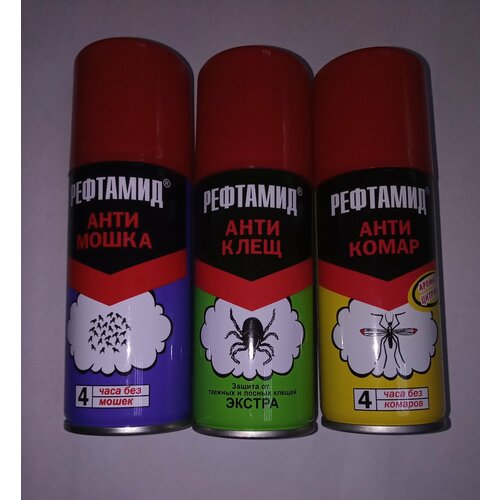 Набор рефтамид аэрозоль: Антиклещ 100мл. + Антикомар 100мл. + Антимошка 100мл.