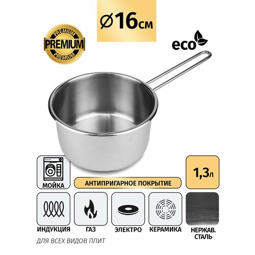 Ковш с ручкой из нержавеющей стали Royal Chef. Объем 1,3 л. Для всех видов плит.