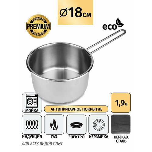 Ковш с ручкой из нержавеющей стали Royal Chef. Объем 1,9 л. Для всех видов плит.