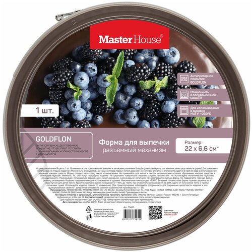 Диаметр сковороды по верху – 26 см. Это популярный размер сковороды, рассчитанный на готовку на семью из 3-4 человек. Бакелитовая ручка с мягким напылением удобно ложится в руку и облегчает манипулирование сковородой. Гарантия Master House 2 года.