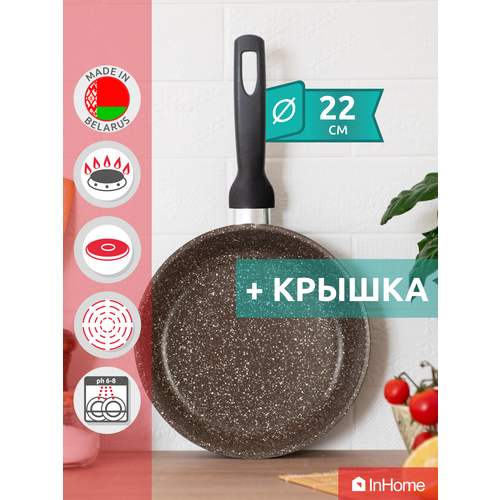 Сковорода InHome классическая литая с антипригарным покрытием, диаметр 22 см