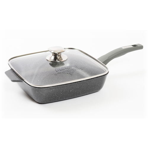 Сковорода Premium grey квадратная со съемной ручкой и стеклянной крышкой алюминий с антипригарным покрытием 24х24см / сковородка для газовых и