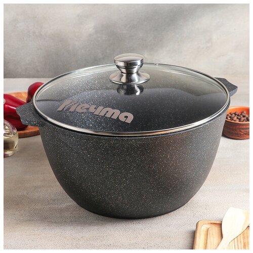 Кастрюля «Гранит star», 10 л, стеклянная крышка, литые ручки, антипригарное покрытие, цвет чёрный