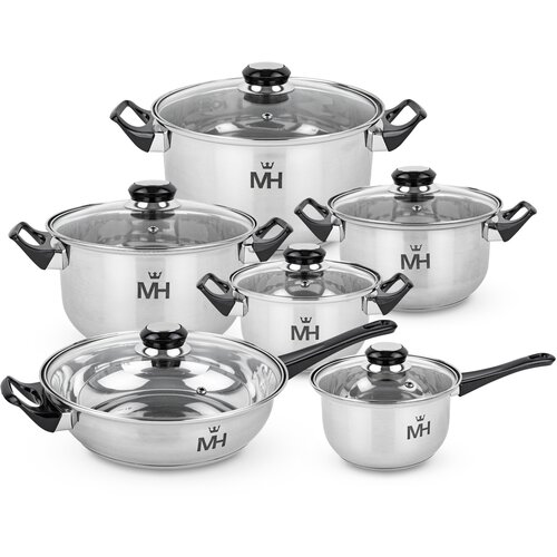 Набор посуды "MercuryHaus", MC - 1856, 12 предметов, Кастрюля с крышкой 5,4 л, 3,1 л, 2,2 л, Сотейник с крышкой 1,6 л, Сковорода
