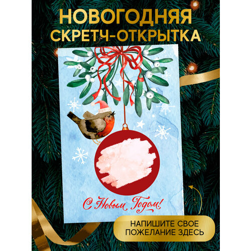Скретч открытка новогодняя Птичка со стирающимся слоем в конверте пустая