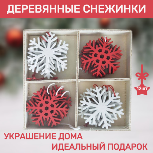 Набор ёлочных игрушек из дерева 12 штук Снежинки 2.0