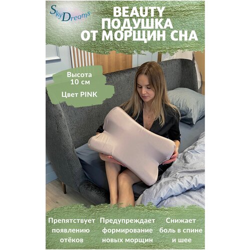 SkyDreams Анатомическая бьюти подушка от морщин сна, высота 10 см, цвет пудрово-розовый