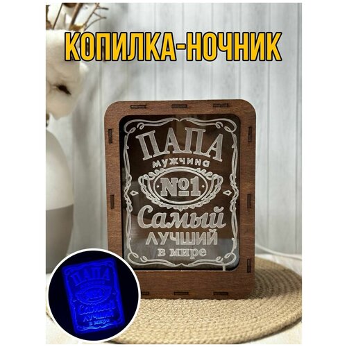 Копилка для денег с подсветкой деревянная в подарок на 23 февраля папе мужчине