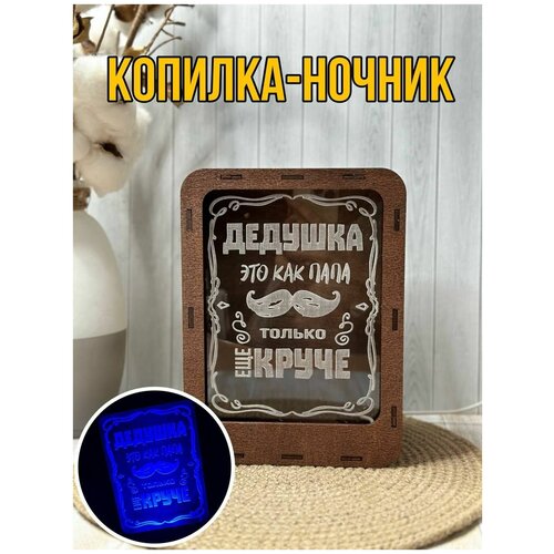Копилка для денег с подсветкой деревянная в подарок на 23 февраля папе мужчине деду