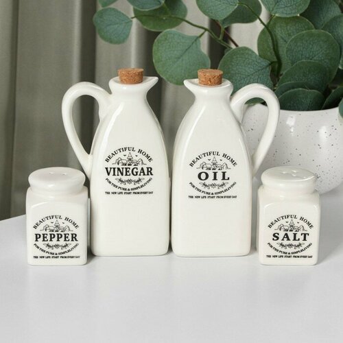 Набор д/специй и масел,4пред"Beautiful Home"солонк и переч 100мл,5х7,5см, банка 350мл 7,5х16см9682375