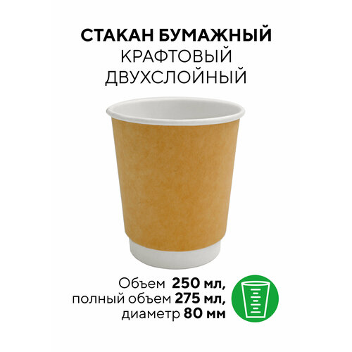 Стакан бумажный, 250 мл, 2-слойный, диаметр 80 мм, крафт, 20 штук