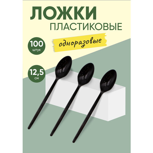 Ложка чайная одноразовая пластиковая 125 мм чёрная PS, 100 штук Optiline
