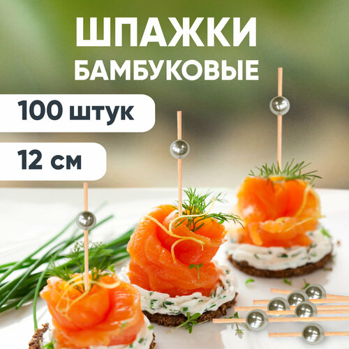 Пика шпажка бамбуковая для канапе 12см перламутровая жемчужина 100 шт/уп Optiline