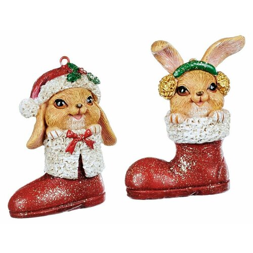 Набор елочных игрушек валенки С зайчатами, полистоун, 8 см, 2 шт, подвеска, Goodwill