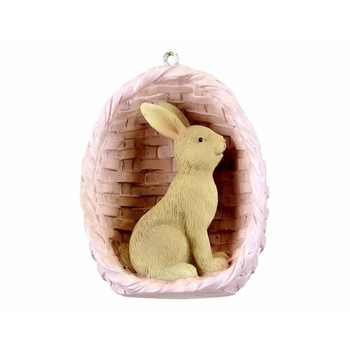 Подвесное украшение зайчик В корзинке, полистоун, розовый, 6 см, Goodwill MCE40050-3