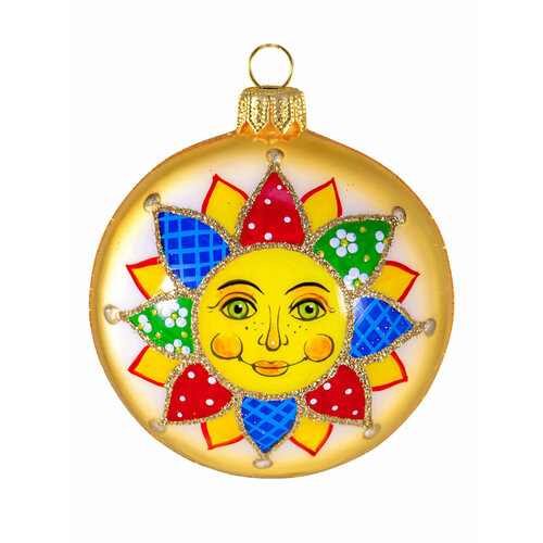 Стеклянная елочная игрушка "Солнышко Веселые лоскутки" Ариель