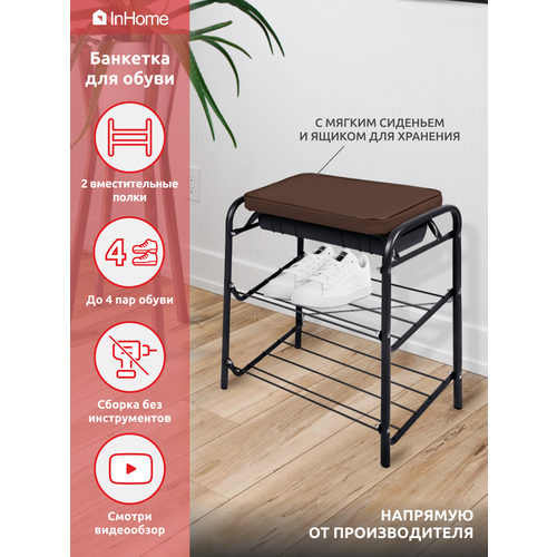 Современная система для хранения в доме - металлическая банкетка-этажерка-стеллаж с сиденьем и ящиком БПИ1/Ч