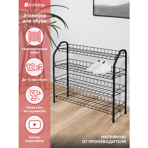 Home выглядит стильно и современно. Она отличается высокой устойчивостью и выдерживает нагрузку до 20 кг. Стеллаж можно использовать как органазйер для обуви, как стеллаж для инструментов, как полку для цветов и рассады. Металлическая полка для обуви может вместить до 12 пар обуви и может стать отличным дополнением мебели в прихожую. Этажерка не ржавеет и не окисляется, не требует сложного ухода и подходит к интерьерным решениям разной направленности. На опорах полки установлены пластиковые наконечники. Они защищают пол в прихожей или другом помещении от царапин и повреждений. Усиленный каркас органайзера выполнен из стали. Этажерку просто собрать без использования инструментов! Характеристики: размеры в разложенном виде (Дх