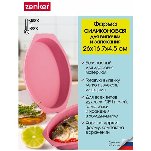 Форма для выпечки и запекания ZENKER Flexxibel, 26х16,7 см, высота борта 4,5 см, силиконовая форма для запекания овальная