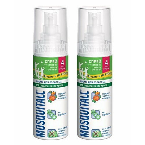 Спрей MOSQUITALL Защита для взрослых от комаров 100 мл. х 2 шт.