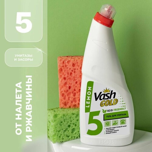 Чистящее средство для унитаза гель для туалета и ванной с дозатором утенок, лимон Vash GOLD Eco Friendly 750 мл