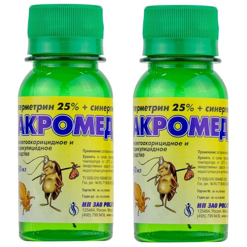 Средство Акромед-У от бельевых, головных, лобковых вшей, чесоточных клещей, 50 мл 2 шт