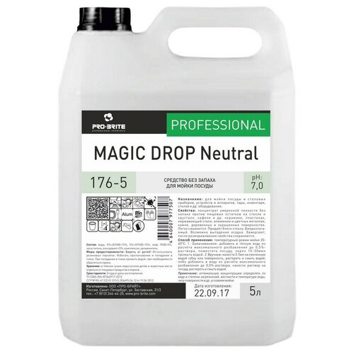 Профхим д/посуды д/ручного мытья Pro-Brite/Magic Drop Neutral, 5л