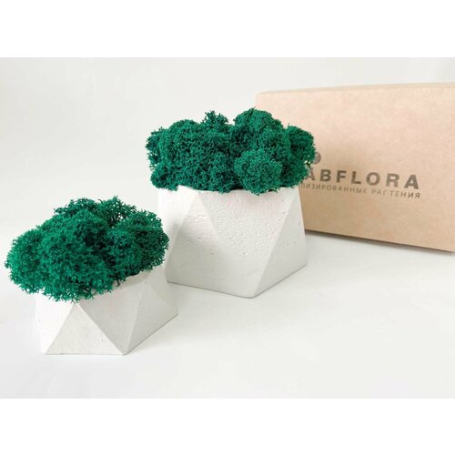 Кашпо для цветов Stabflora из гипса с мхом изумрудного цвета, 3 в 1