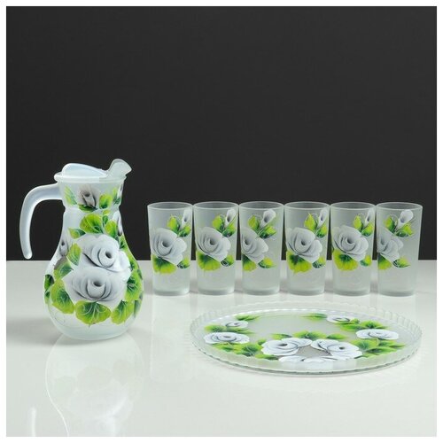 Набор для сока с подносом "Розы" художественная роспись, 6 стаканов 1250/200 мл, микс (1шт.)