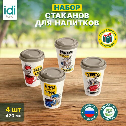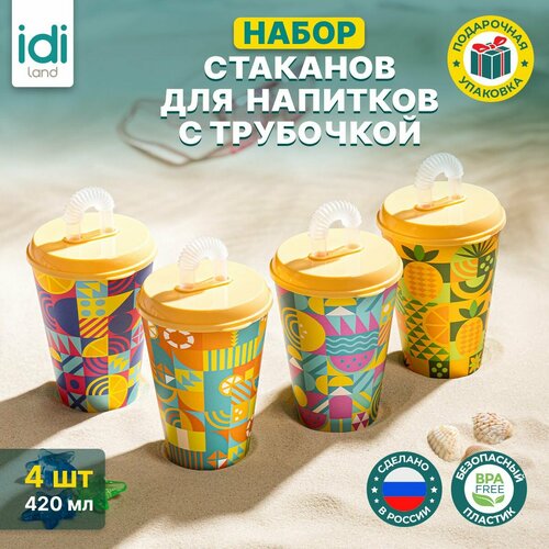 Набор пластиковых стаканов IDILAND, 4 шт по 420 мл