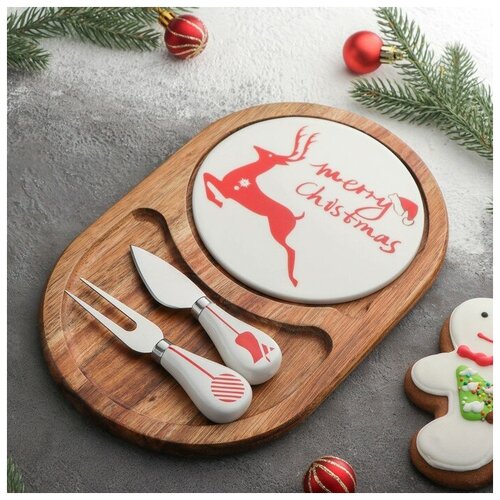 Набор для подачи сыра «Рудольф», 2 ножа, 28×18,5×1,5 см, овальный, акация