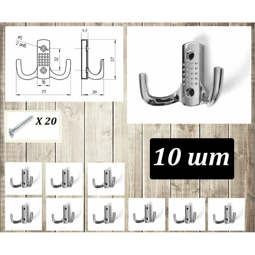 Усиленный мебельный крючок настенный "двойной" с точками - 10шт -