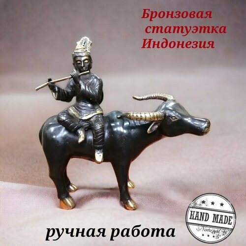 Статуэтка бронзовая пастух на буйволе Индонезия 31см