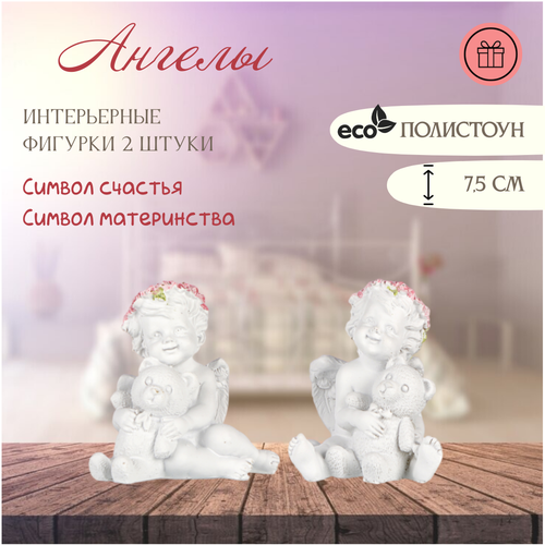 Статуэтки Ангелы с плюшевыми мишками 7,5 см /Набор 2 штуки