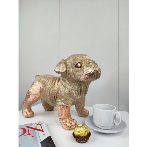 Статуэтка интерьерная бульдог щенок в декоре "Золотая Охра и Медь"