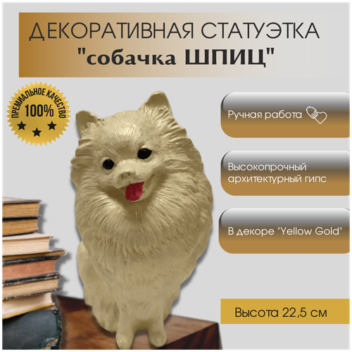 Статуэтка интерьерная Собачка шпиц в декоре "Желтое Золото", выс. 22,5см , дл. 17см. Декор для дома, квартиры и офиса, сувенир подарочный.