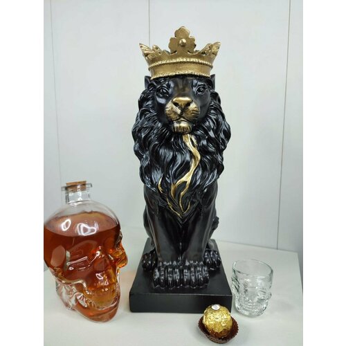 Статуэтка интерьерная большая король ЛЕВ в декоре "Черный и Золото" , декорация для дома и офиса, выс. 35 см.