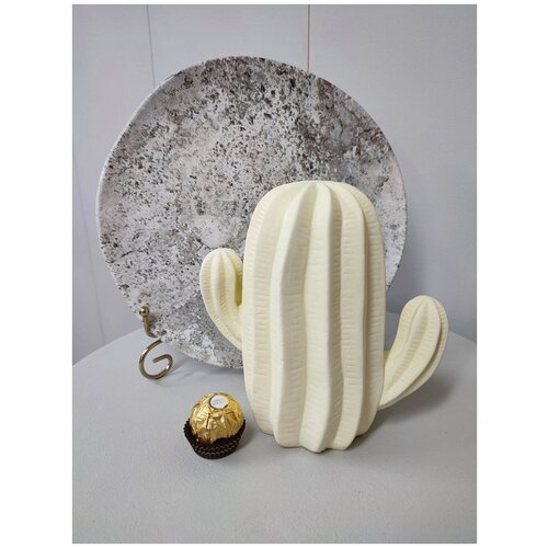 Статуэтка интерьерная кактус в декоре "Желтая Пастель", сувенир декоративный для дома и офиса. Выс. 20см.