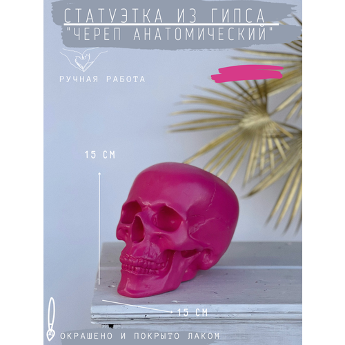 Статуэтка Череп анатомический из гипса в розовом цвете, 15х15х20 см